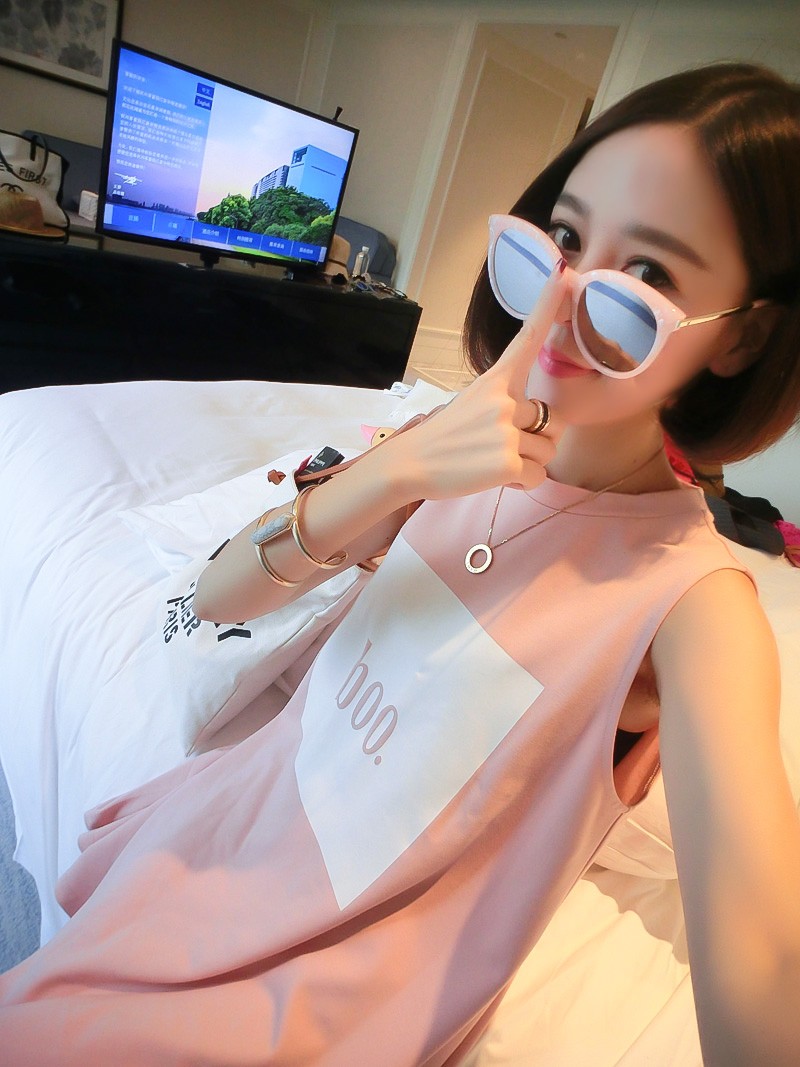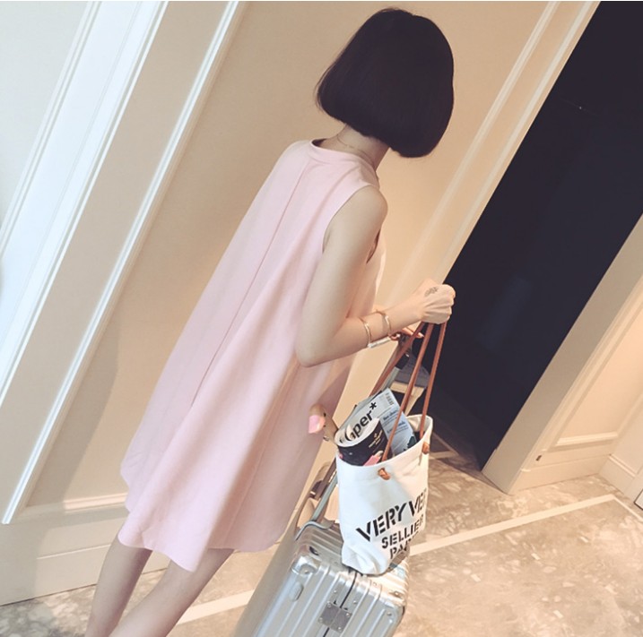 / 網紅同款衣服女寬松無袖休閑上衣字母印花百搭顯瘦中長款t連衣裙