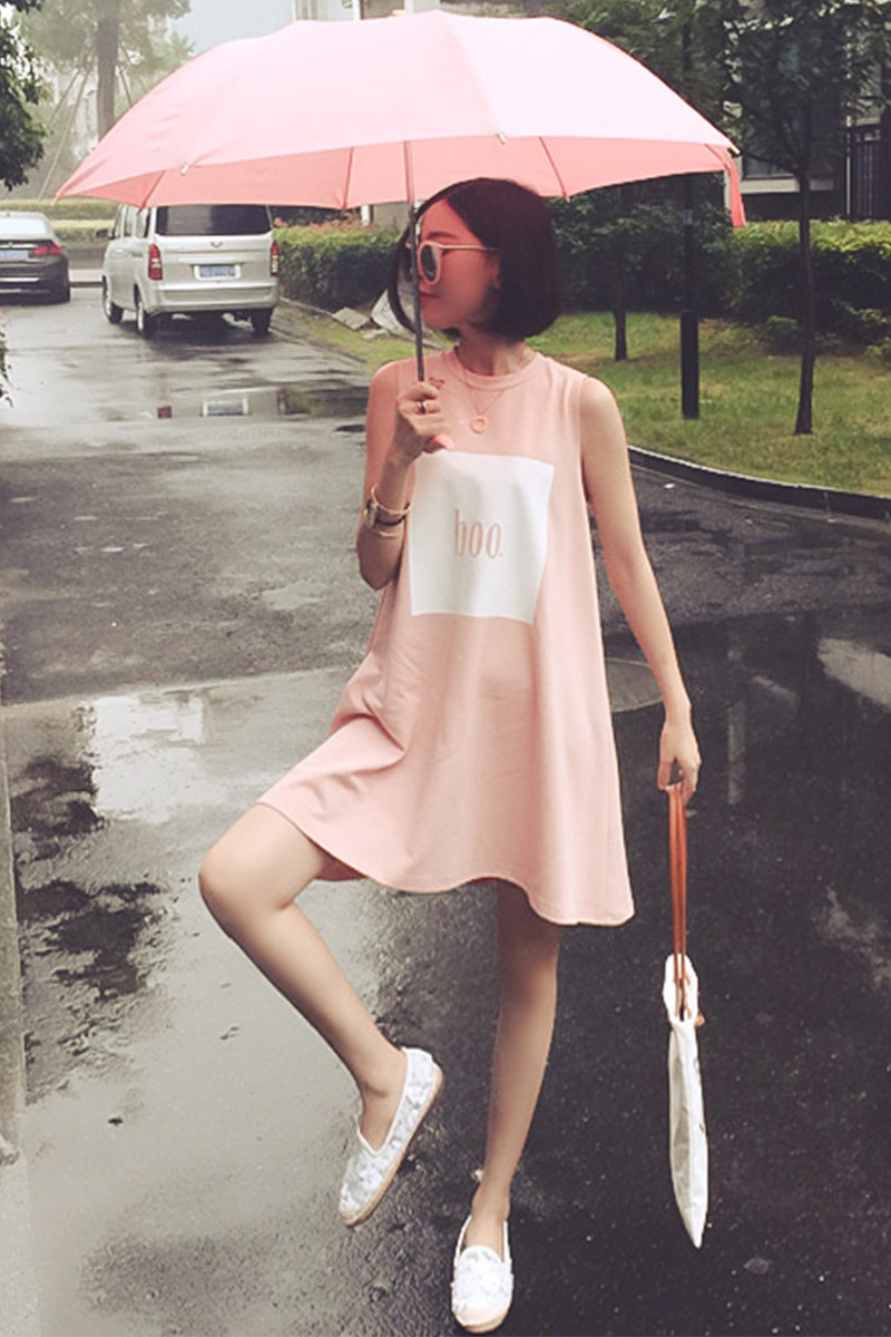 網紅同款衣服女寬松無袖休閑上衣字母印花百搭顯瘦中長款t連衣裙