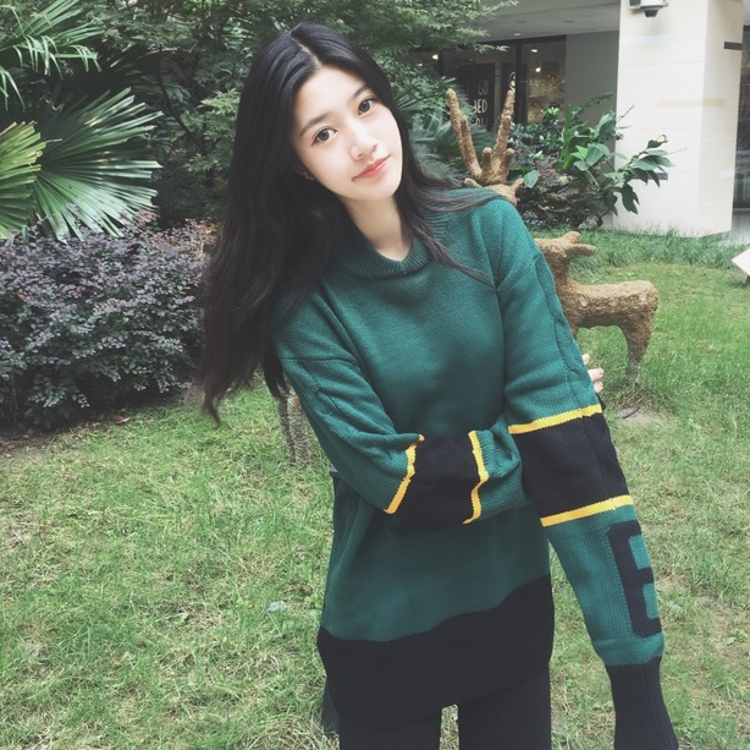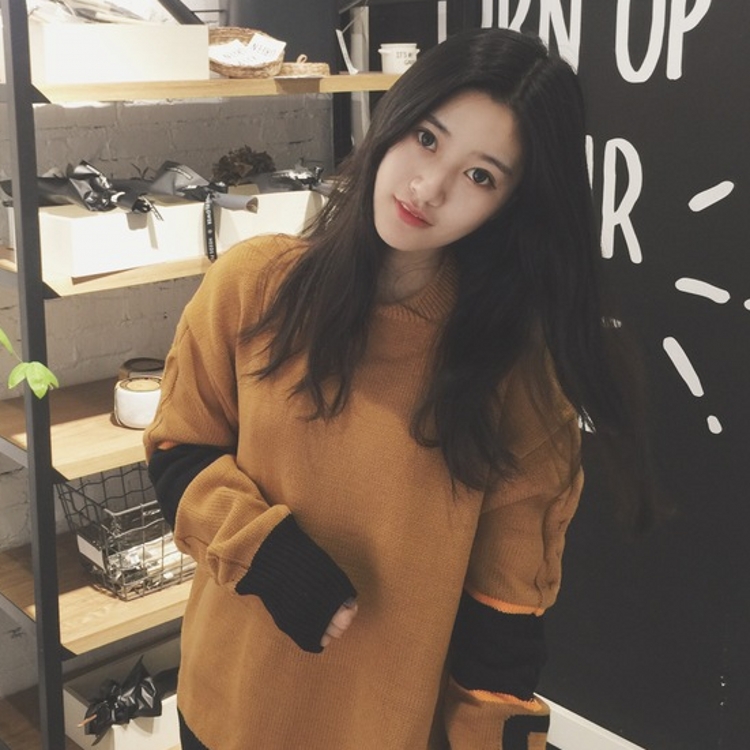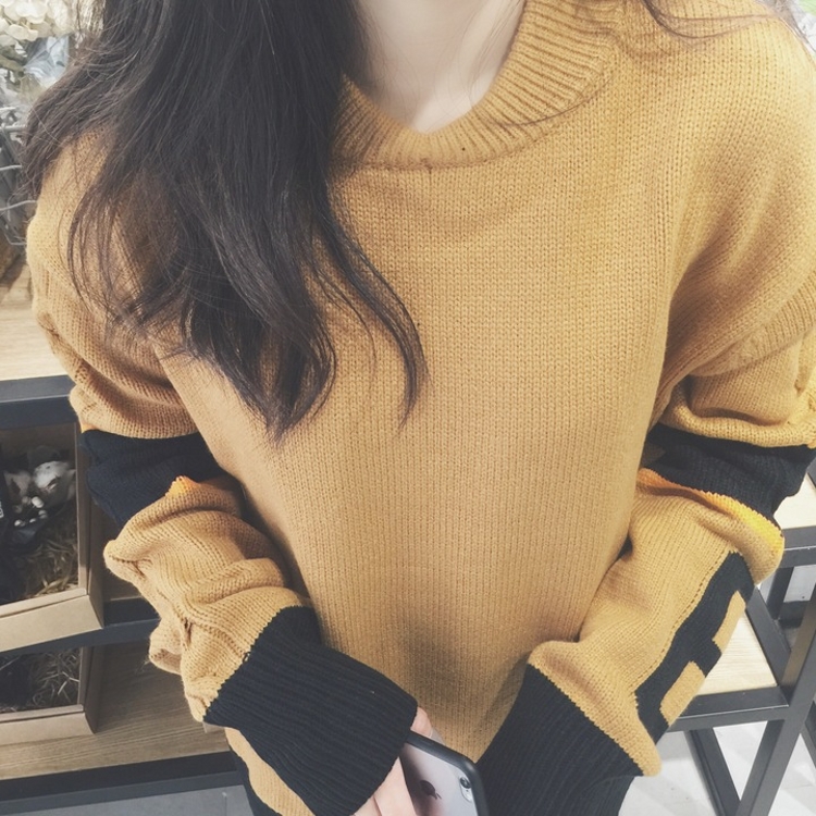 韓國chic秋冬款個性撞色數字中長款套頭粗針學生毛線毛衣女