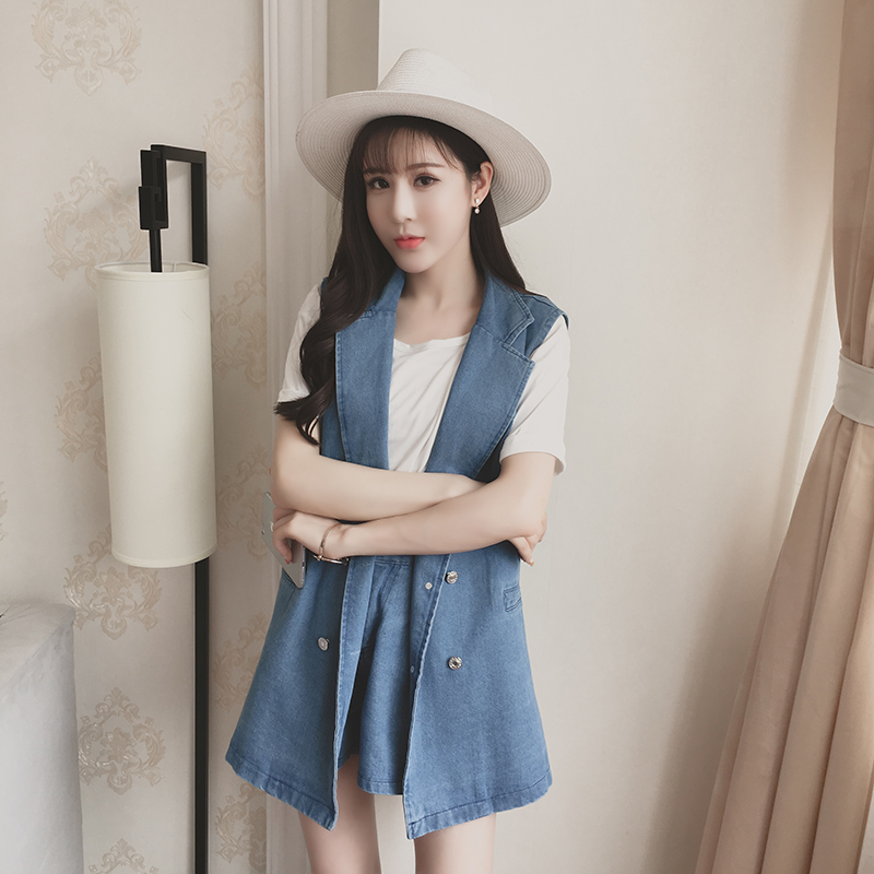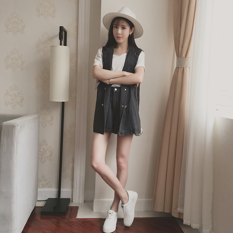 / 夏季新款韓版時尚小香風馬甲外套牛仔套裝女休閑短褲兩件套潮