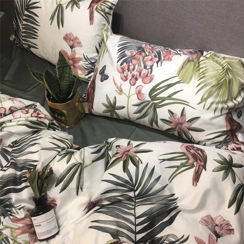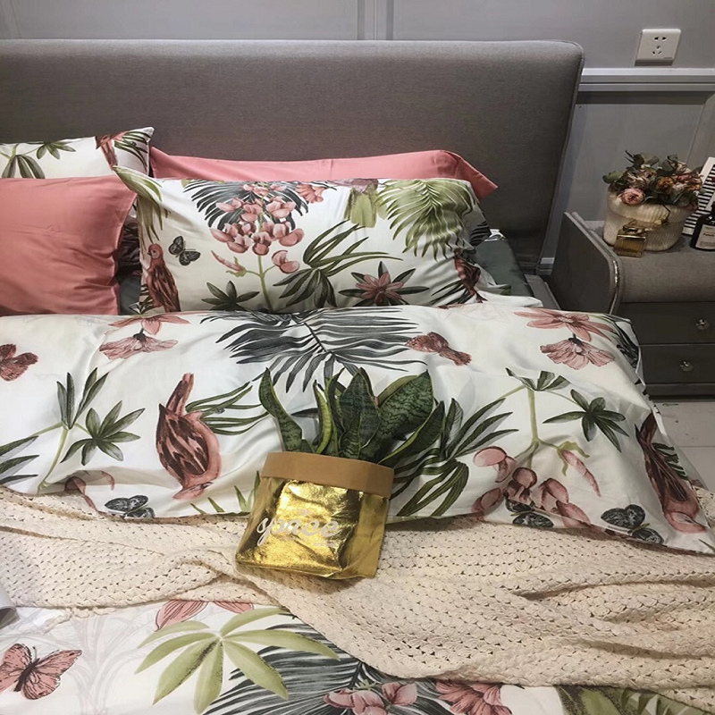 [白色莫奈]60支純棉貢緞清新風床上四件套標準加大床上套件