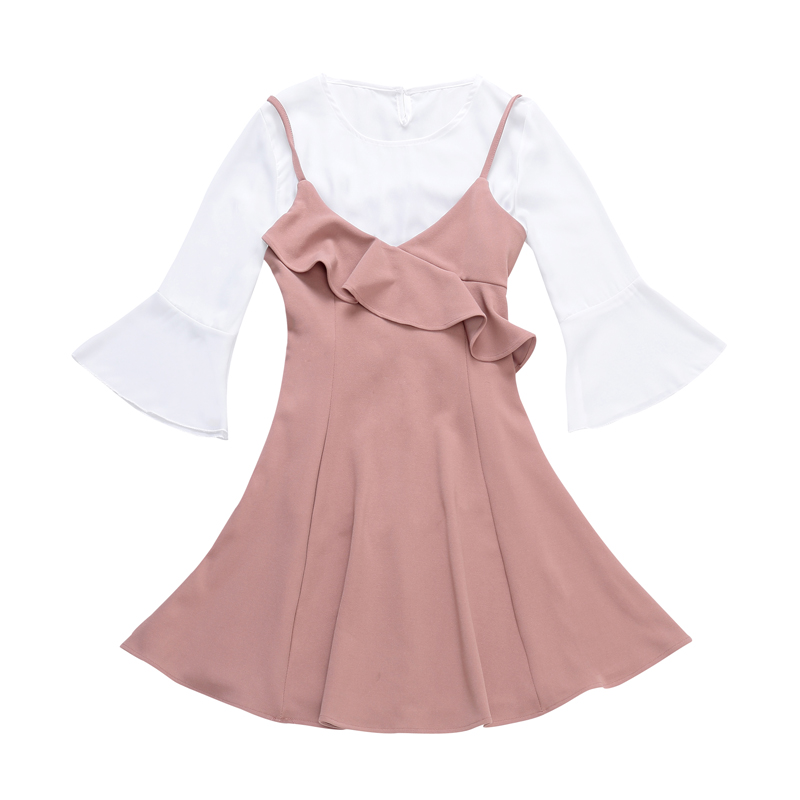 / 春夏季新款女裝韓版荷葉邊吊帶裙兩件套修身七分袖雪紡連衣裙