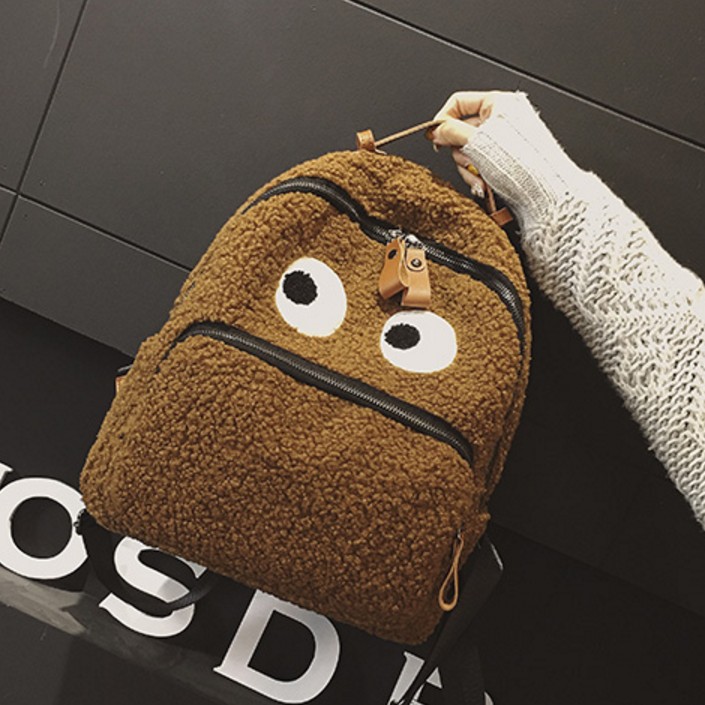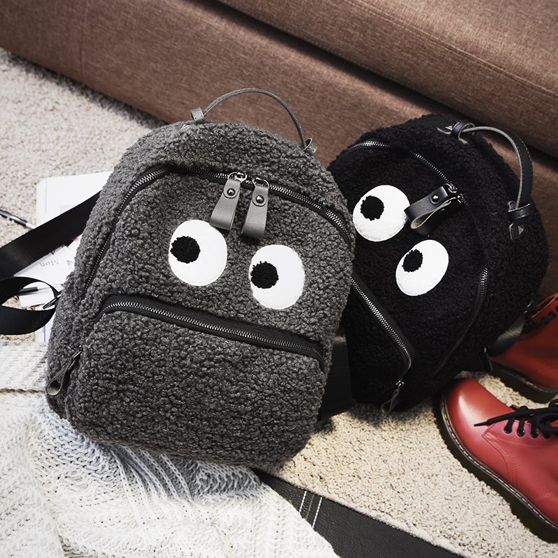 / 5-12歲兒童可愛羊羔毛雙肩包男女童旅游休閑背包個性大眼睛書包潮