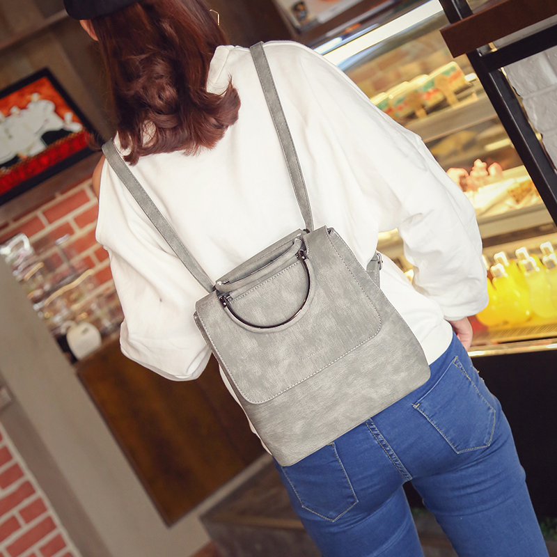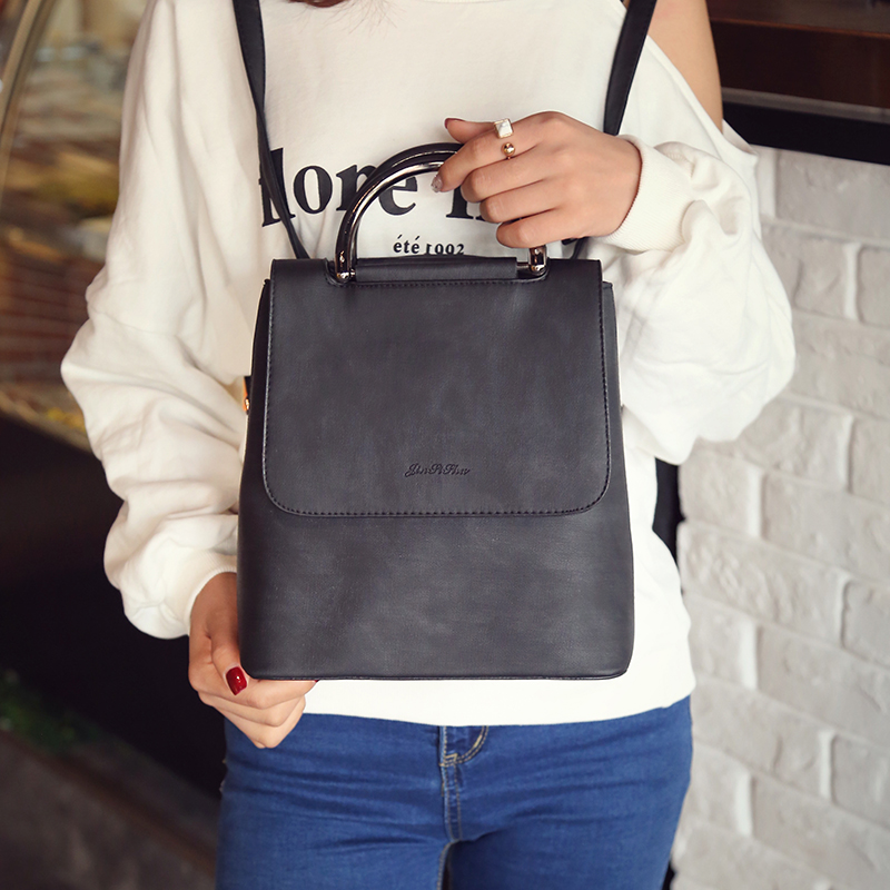 秋冬新款韓版多用雙肩包女學院風休閑PU兩用背包手提斜跨書包