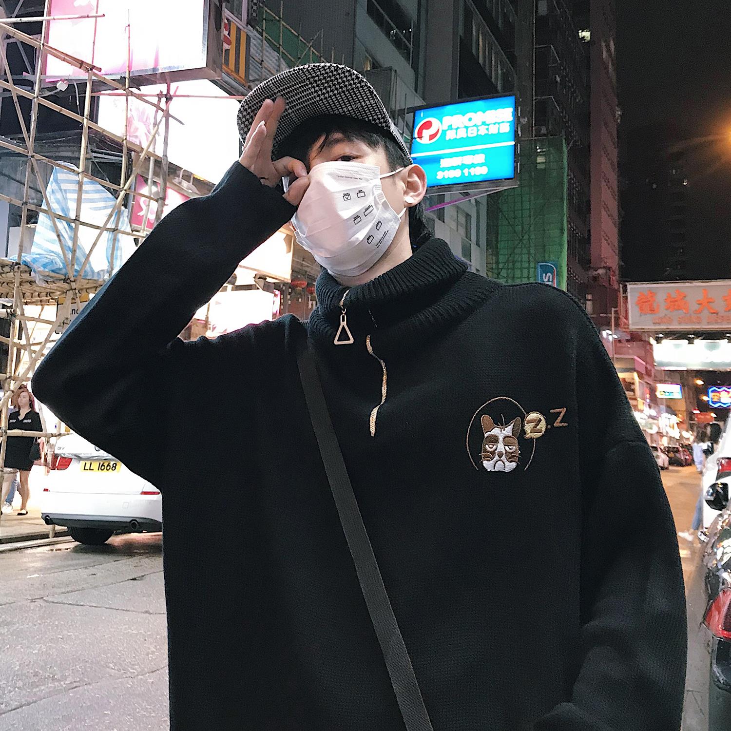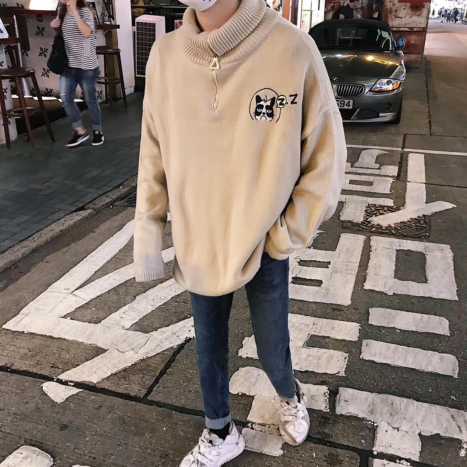 文藝男女店高領毛衣男士秋冬季寬松針織衫韓版潮流帥氣外套毛線衣
