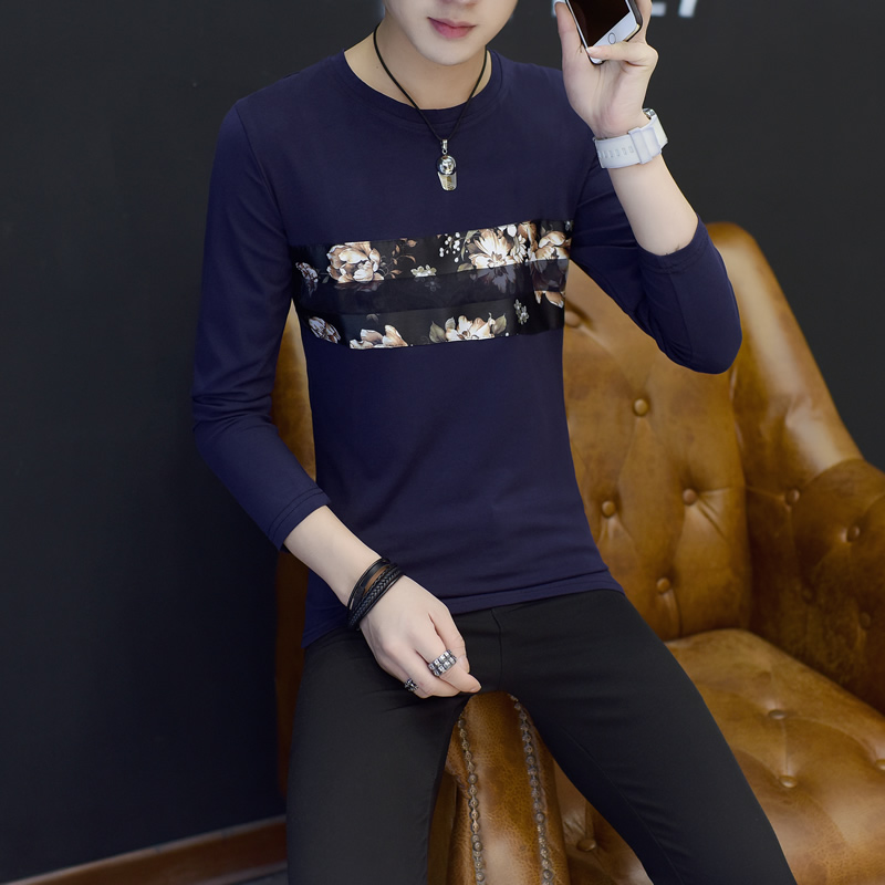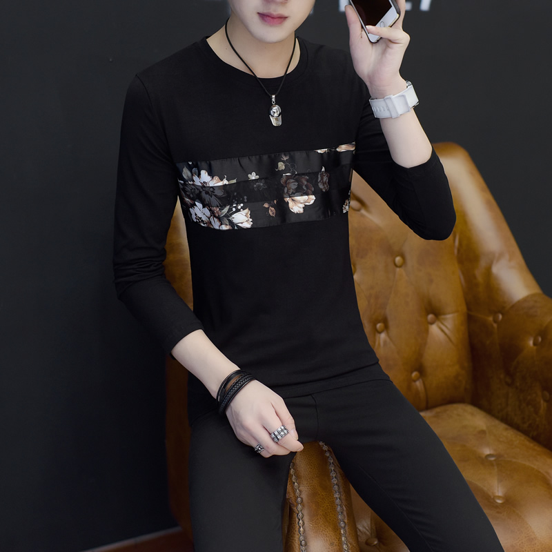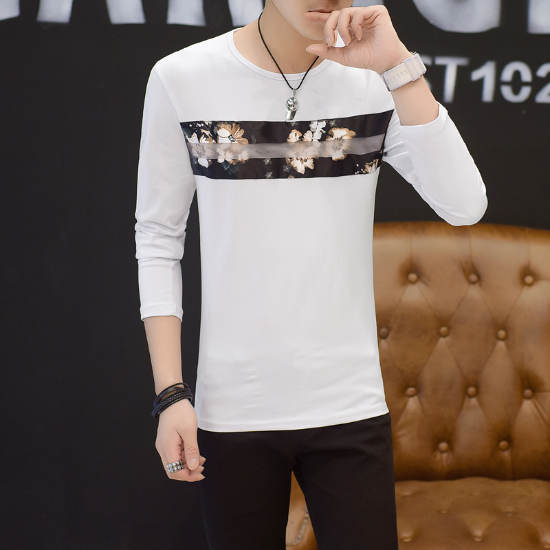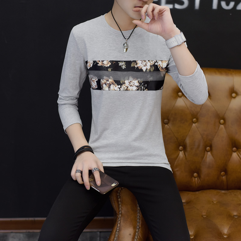 2017新款長袖T恤男潮流修身秋裝男 T恤圓領男裝