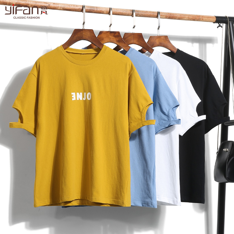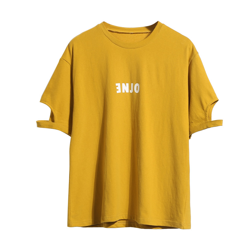 / 夏季純色字母印花寬松T恤韓版破洞短袖上衣女裝純棉打底體恤