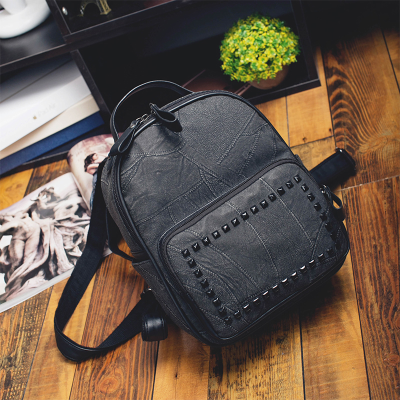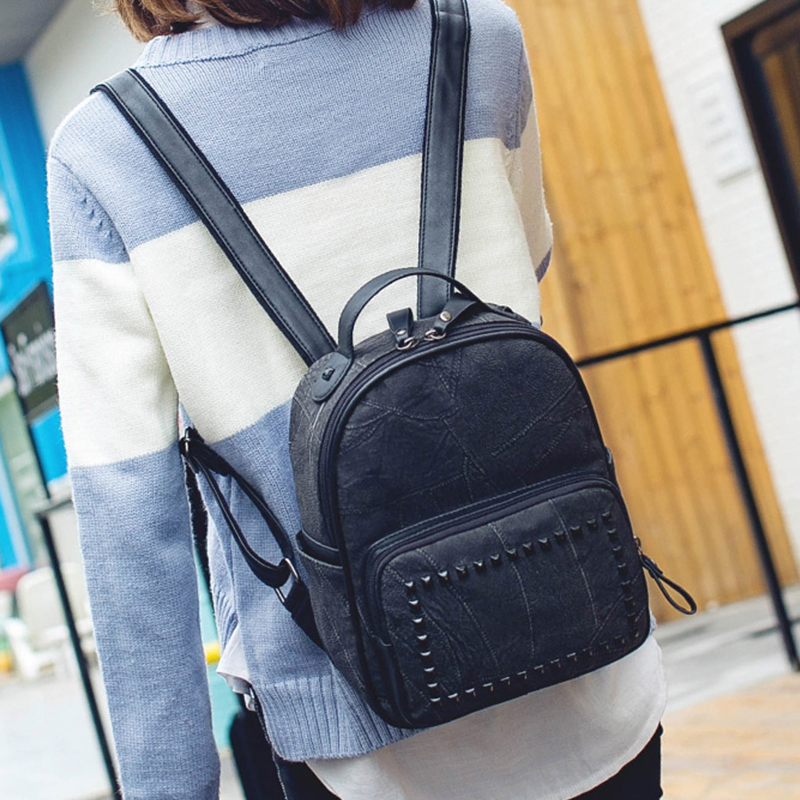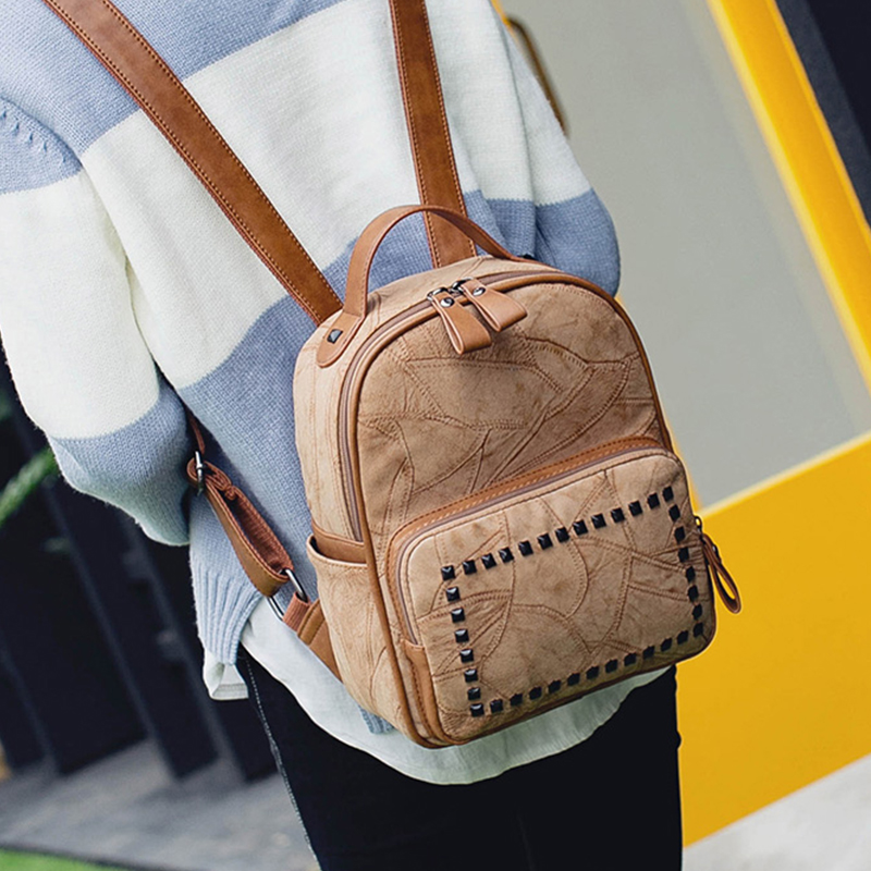 秋冬新款小背包韓版磨砂雙肩包女學院風鉚釘休閑書包旅行包包