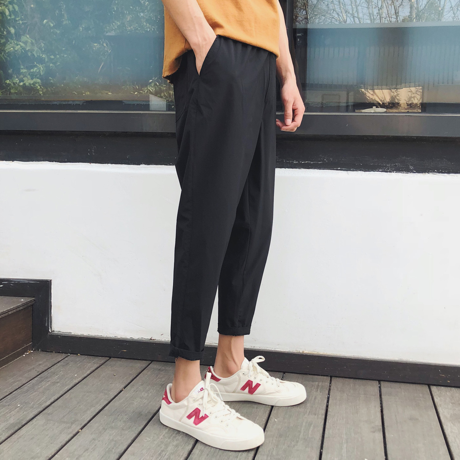 / 秋季男士褲子休閑褲韓版修身西褲九分褲百搭文藝潮流復古黑色男褲