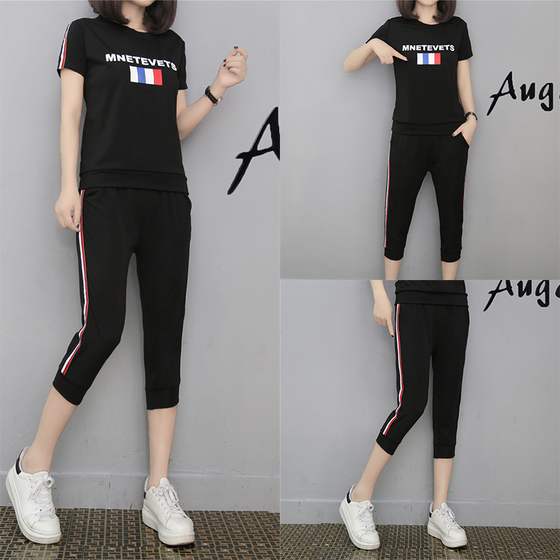 / 運動套裝女2017夏季新款短袖七分褲大碼女裝胖妹妹休閑服兩件套