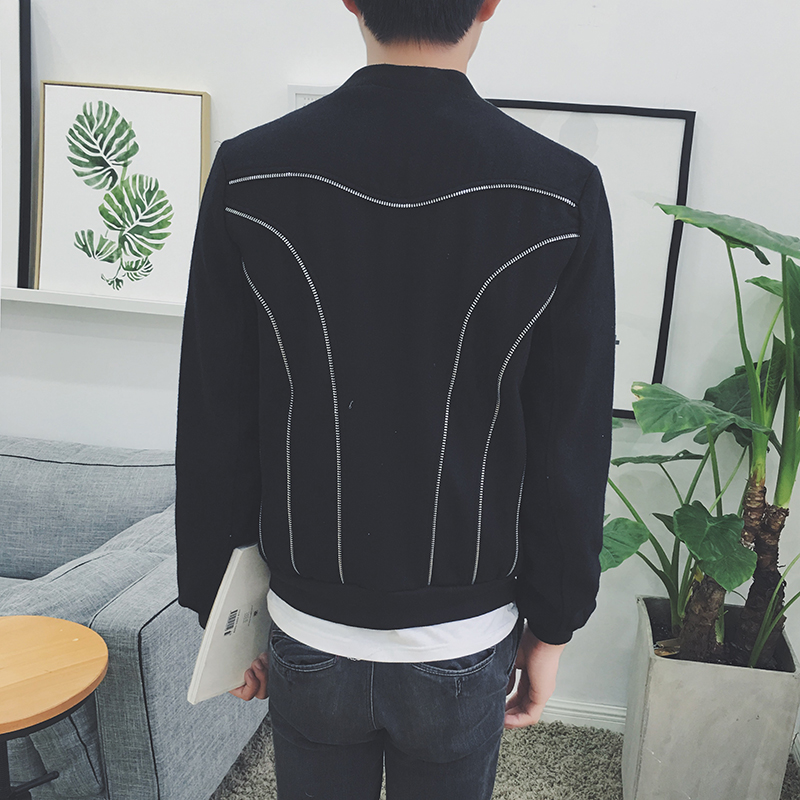 / 原創拉鏈裝飾潮男修身毛呢短款夾克韓版秋港風外套