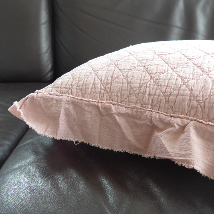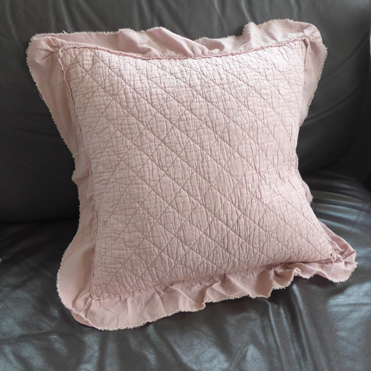 [白色莫奈]新年特價出口水洗府綢花邊絎縫靠墊抱枕(含羽毛芯)