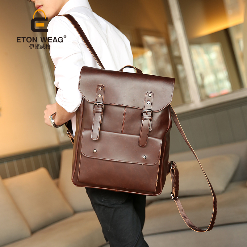 新款瘋馬皮雙肩包男女包潮休閑雙肩包復古背包中學生書包旅行包