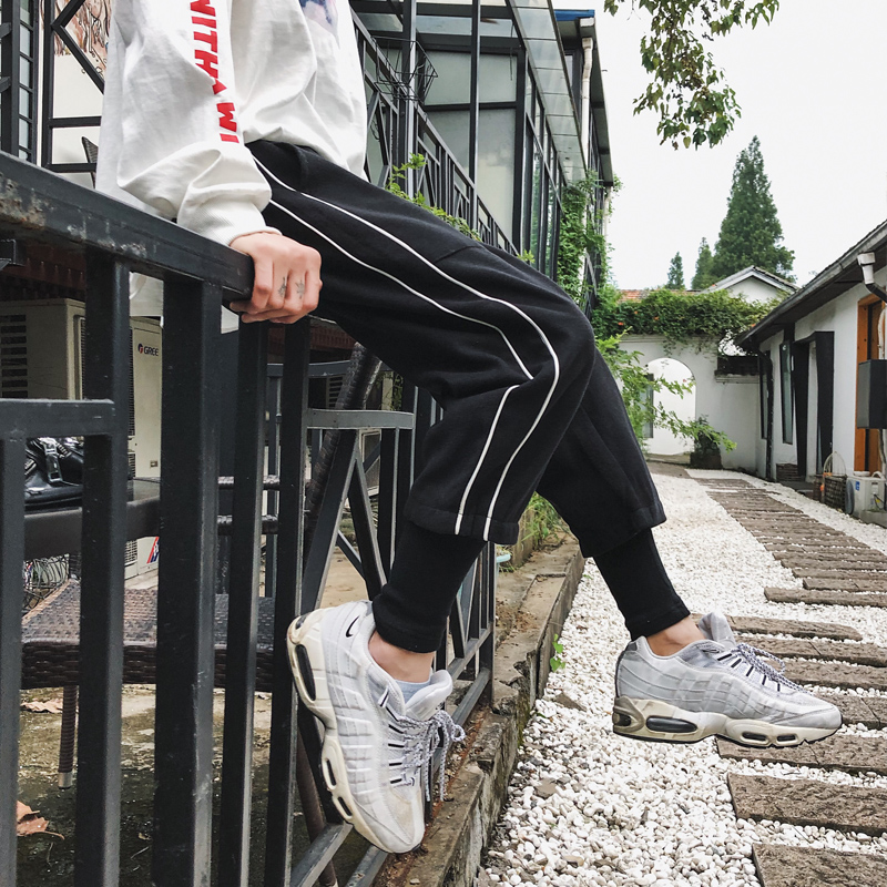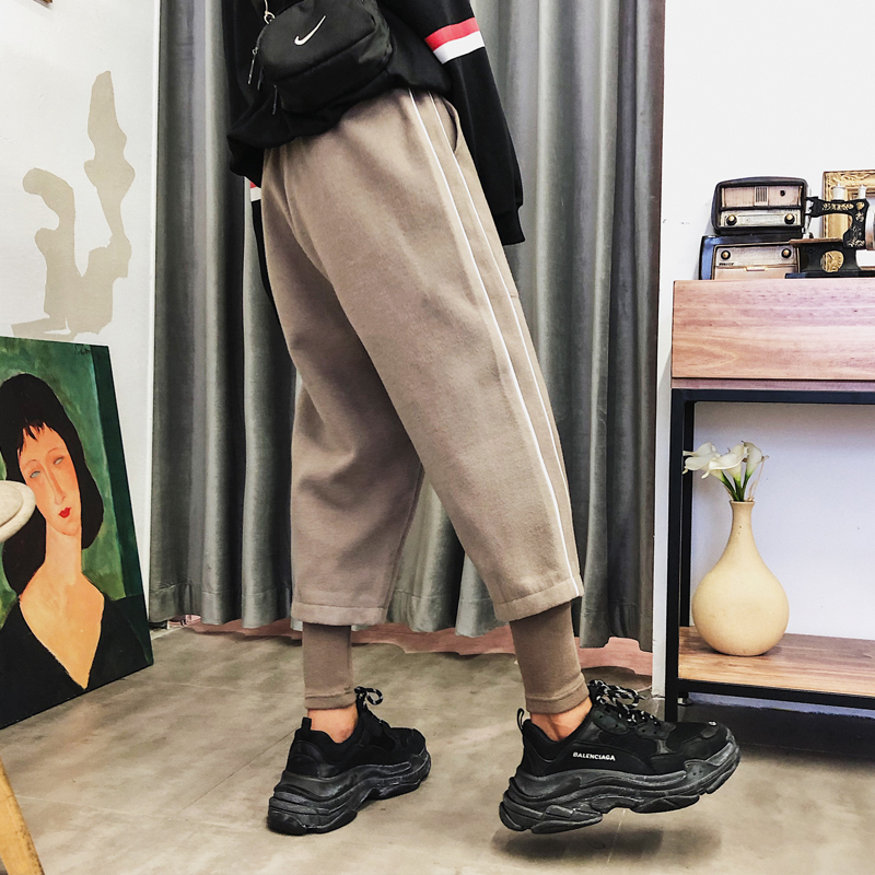 / 文藝男女店新款男士束腳褲假兩件毛呢哈倫褲秋季休閑褲潮流褲子男