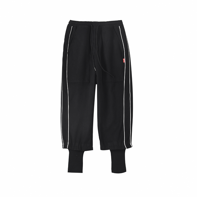 文藝男女店新款男士束腳褲假兩件毛呢哈倫褲秋季休閑褲潮流褲子男