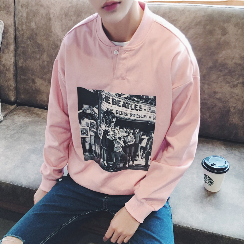 / 秋季新款港風原創動物印花圓領套頭寬松男士衛衣