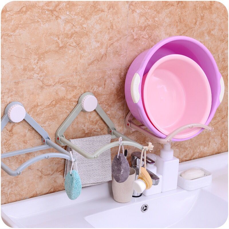 / 居家無痕免釘吸盤臉盆架 衛生間置物架洗臉盆自動回彈臉盆收納架