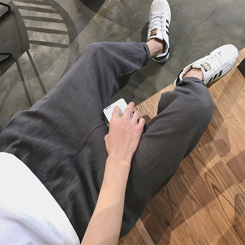 秋季日系復古褲子男士休閑褲九分褲韓版潮流修身小腳褲運動褲長褲