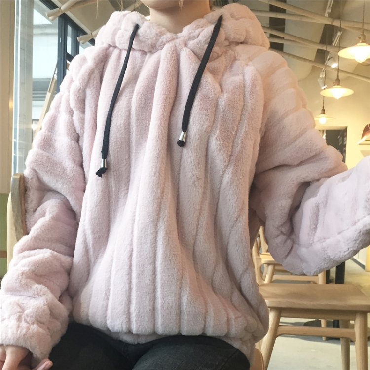 絨絨的面料 摸起來 穿上身都很舒F哦~