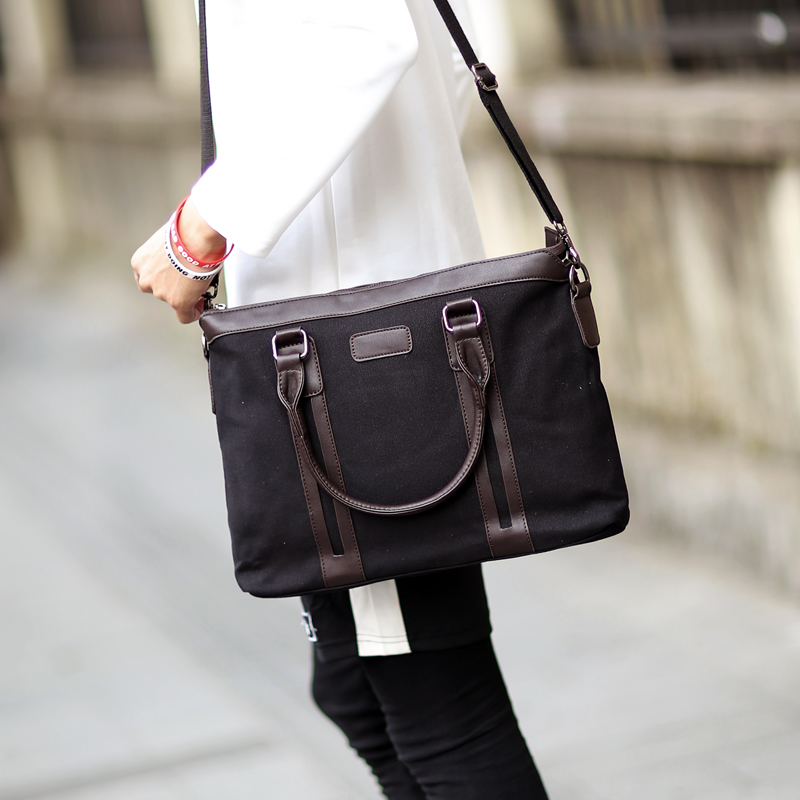 新款韓版帆布男包手提包單肩斜挎包休閑商務男包公文包電腦包