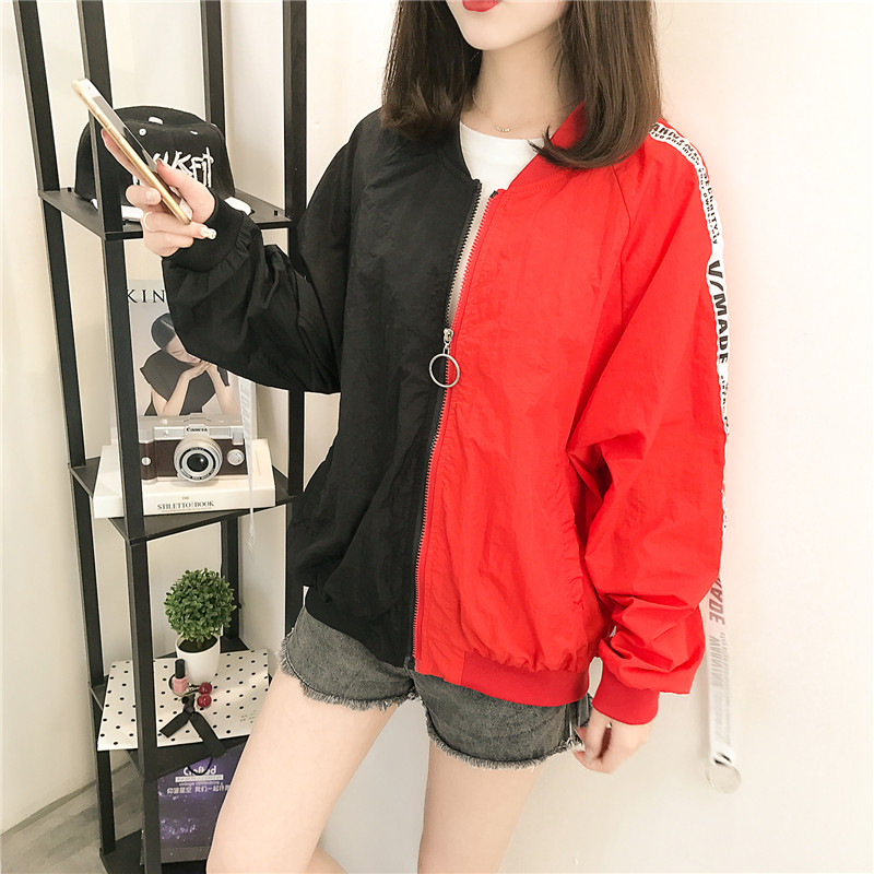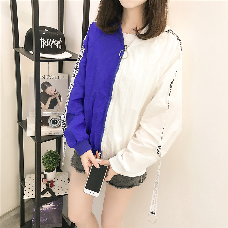 女款防曬衣2017新款韓版原宿學院風寬松bf拼色長袖休閑外套女春秋