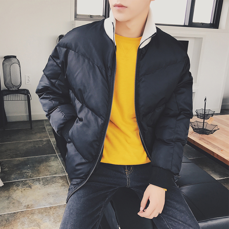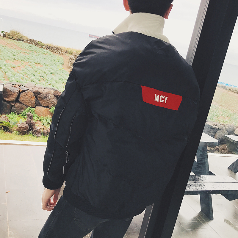 男裝韓版貼布撞色立領棉服加厚寬松版面包服棉衣男
