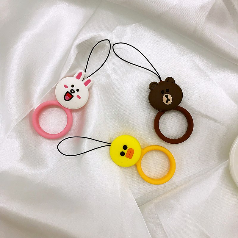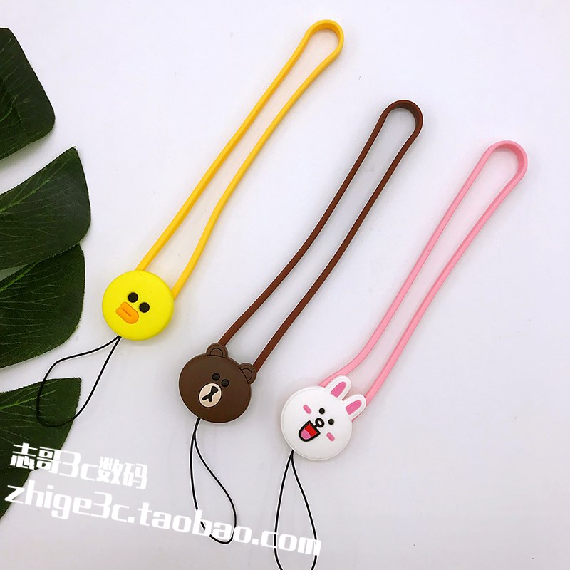 line布朗熊莎莉雞可妮兔硅膠卡通指環防摔可愛手機殼短掛繩手腕繩