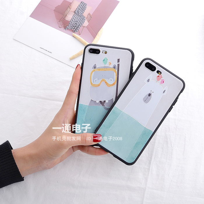 卡通和你泡在一起河馬北極熊蘋果7手機殼6plus 5.5可愛
