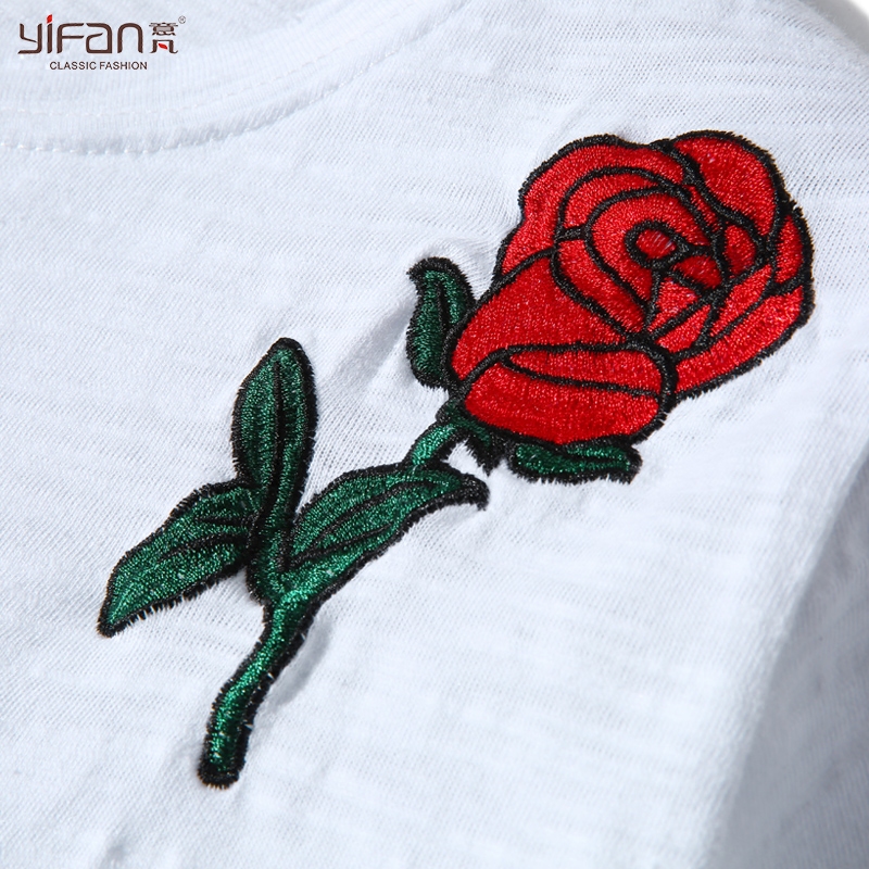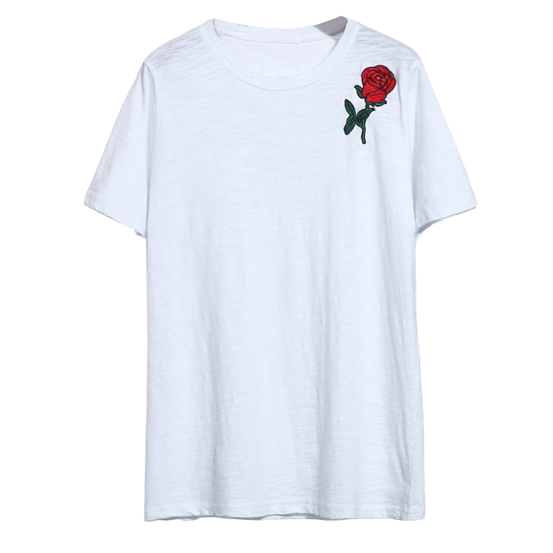 韓國春夏新款做舊磨破女裝寬松刺繡玫瑰花短袖白色T恤女學生