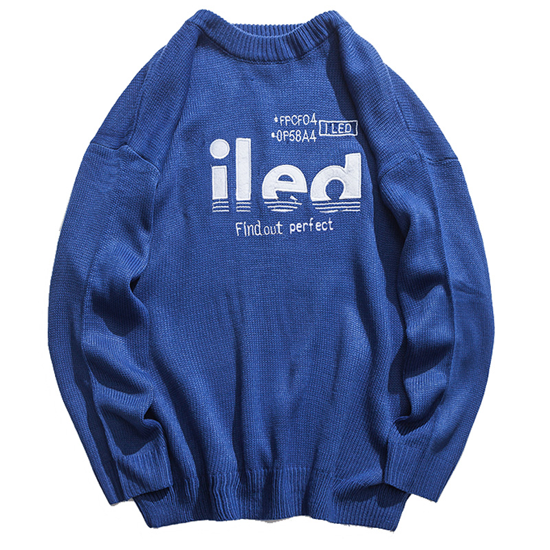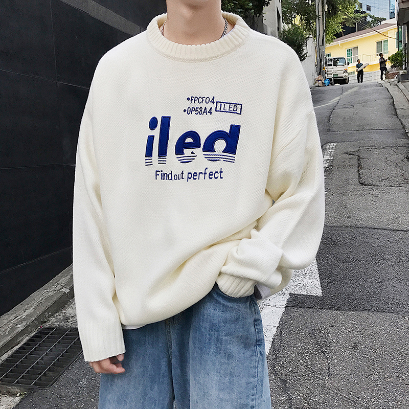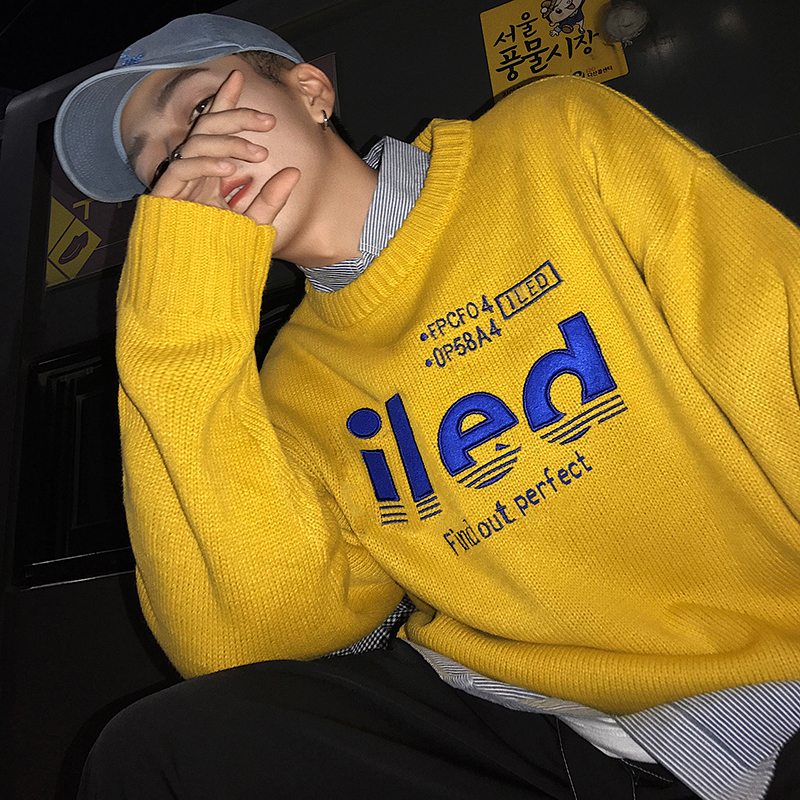 文藝男女店chic潮流圓領毛衣寬松保暖針織衫男士外套韓版秋季線衣