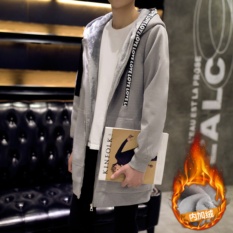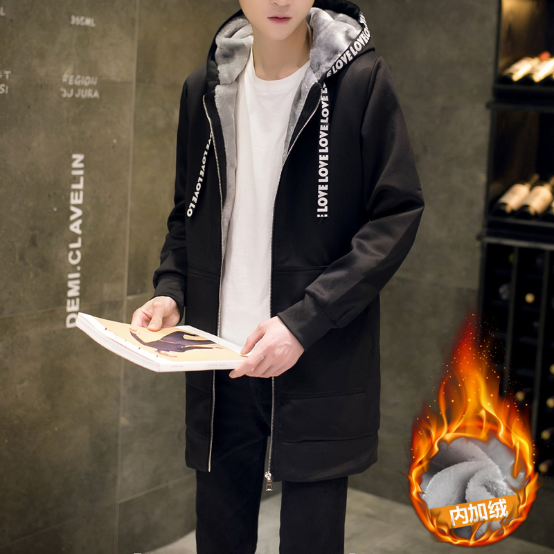/ 冬季風衣男中長款加絨大衣青年風衣修身韓版大碼外套男