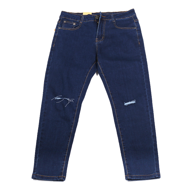 原創秋裝膝蓋開口韓版小直腳男士修身九分牛仔褲潮