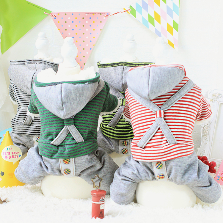 / 四色背帶條紋寵物泰迪狗狗貴賓犬貓咪比熊衣服裝秋冬四腳褲