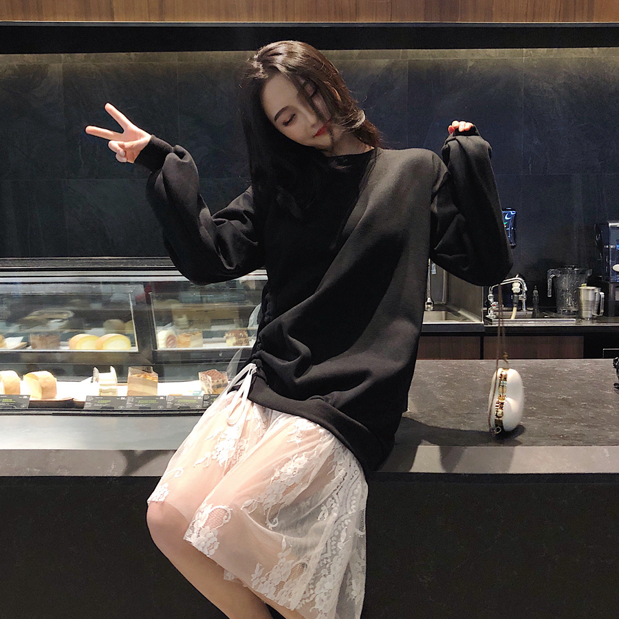 港味加絨抽繩衛衣拼接蕾絲裙擺