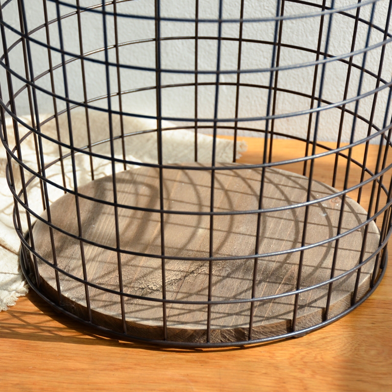 創意辦公雜物收納籃家用收納筐家居用品鐵藝木底臟衣籃