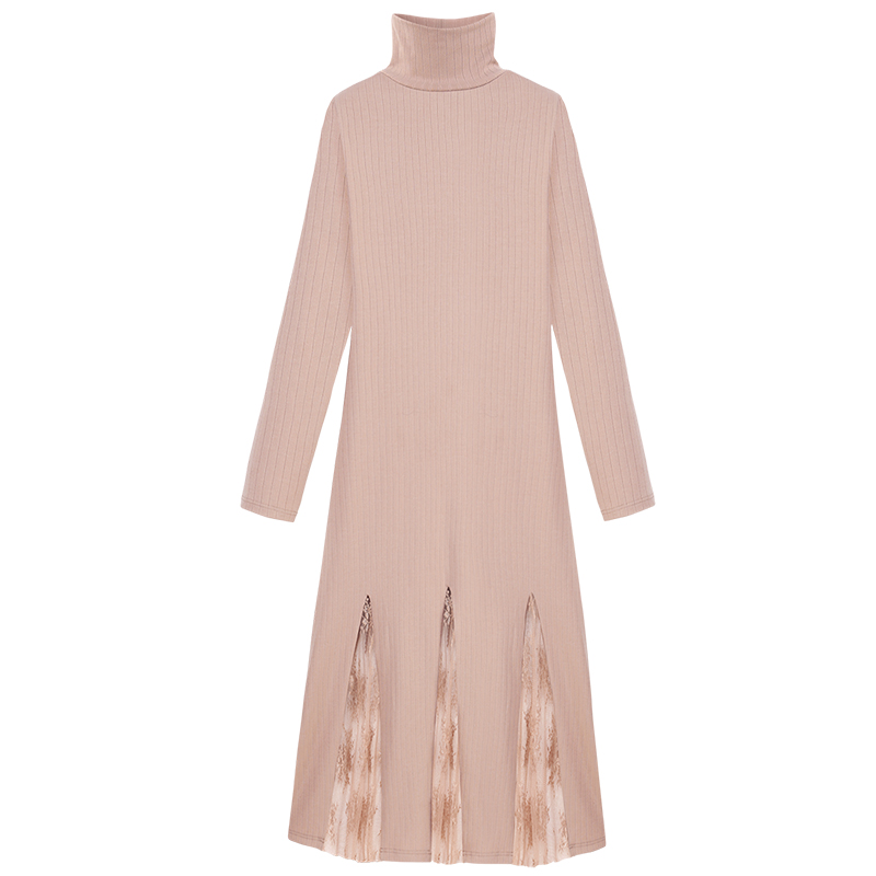 MG小象秋冬高領連衣裙女中長款過膝針織裙2018新款寬松氣質裙子潮