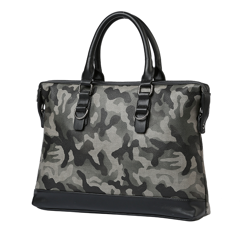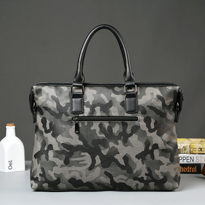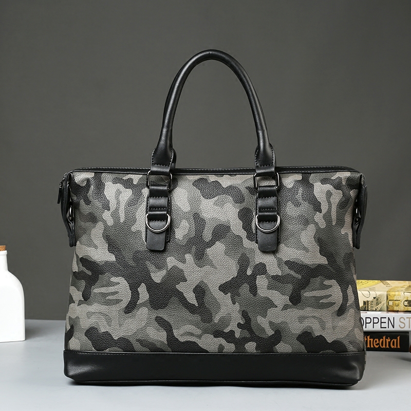 / 新款迷彩手提包男休閑斜挎包時尚商務公文包PU皮單肩包男包潮