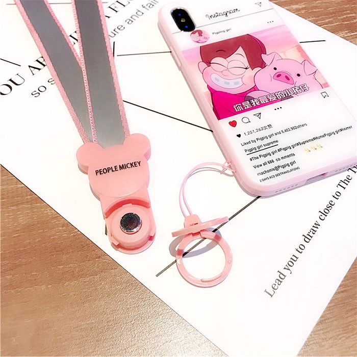 iPhoneX男女手機掛繩拆卸支架蘋果7plus卡通6s通用掛脖子長寬織帶