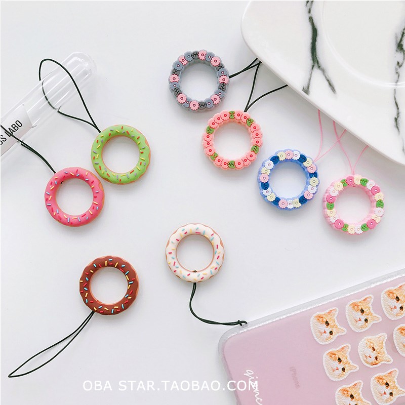 / 甜甜圈指環小手繩掛繩掛件掛飾手機iPhone6/7plus/6s/8/X蘋果女款