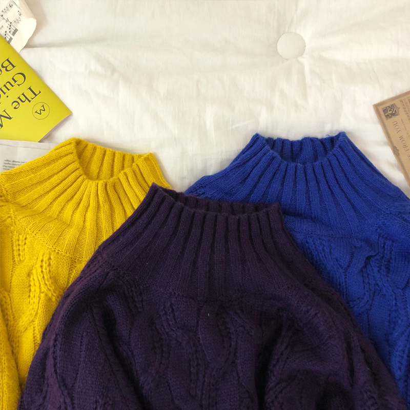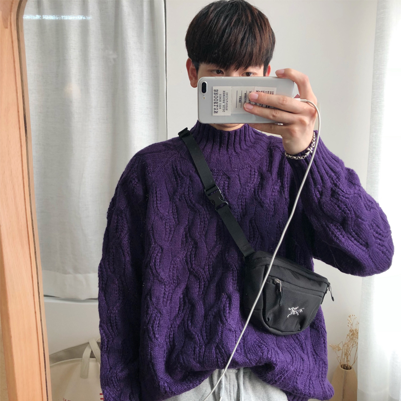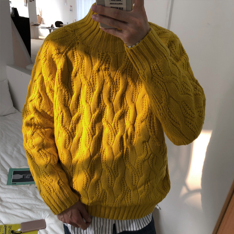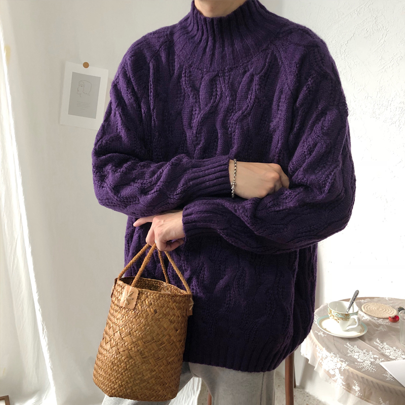 文藝男女店男士高領針織衫冬季韓版寬松麻花毛衣情侶潮流外套線衣