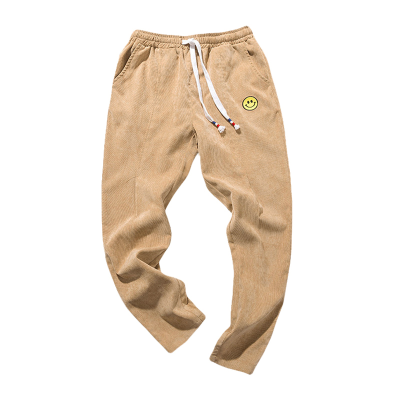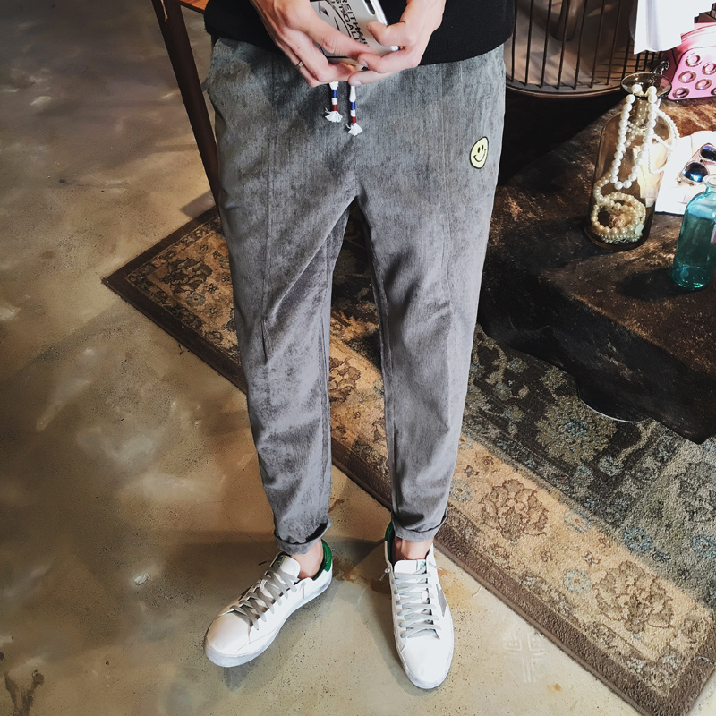 / 秋上新笑臉繡花潮男小腳修身休閑褲韓版燈芯絨長褲