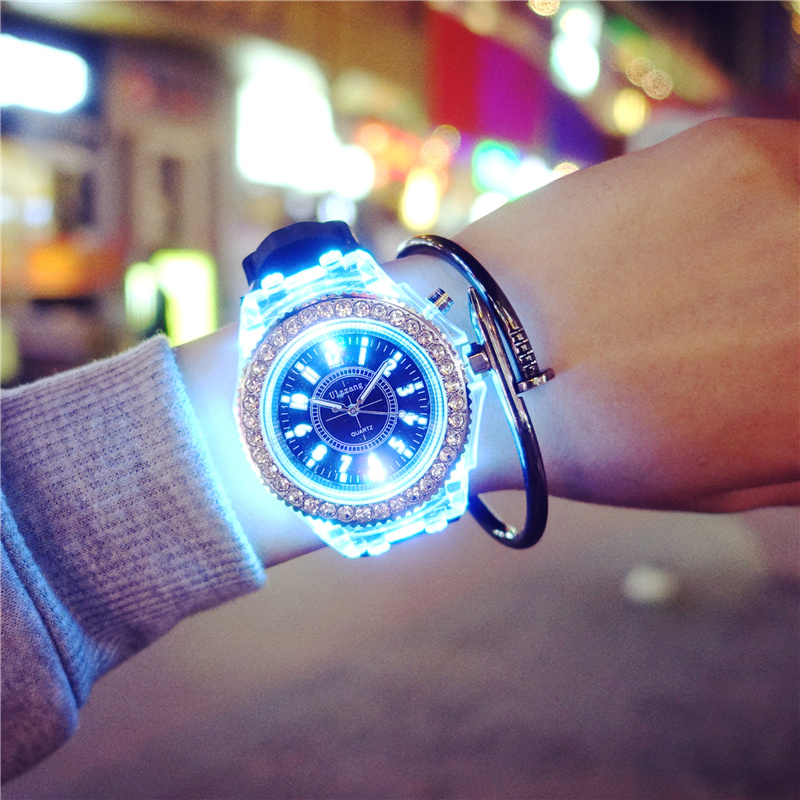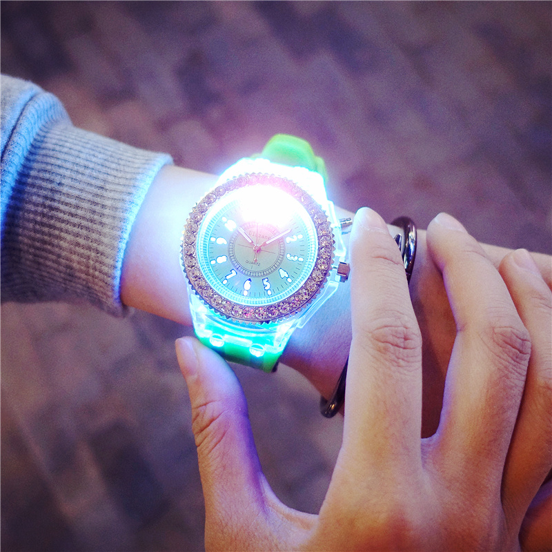 手表右上有一個按鈕,按一下,燈亮,并開始由7種顏色交替閃爍,