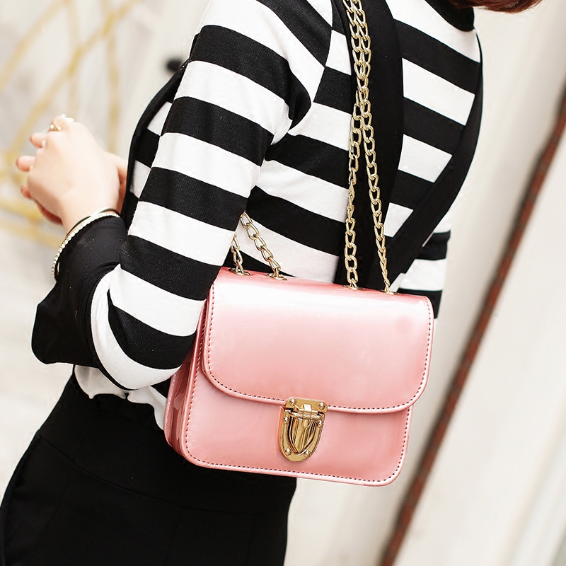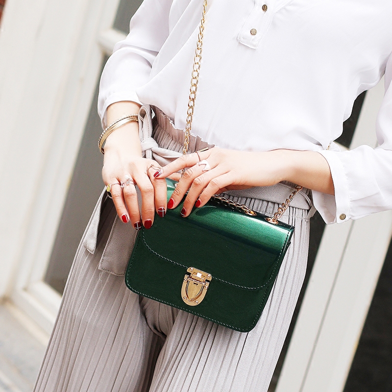 包包女新款潮漆皮鏈條小方包韓版單肩女包小包百搭斜挎果凍包