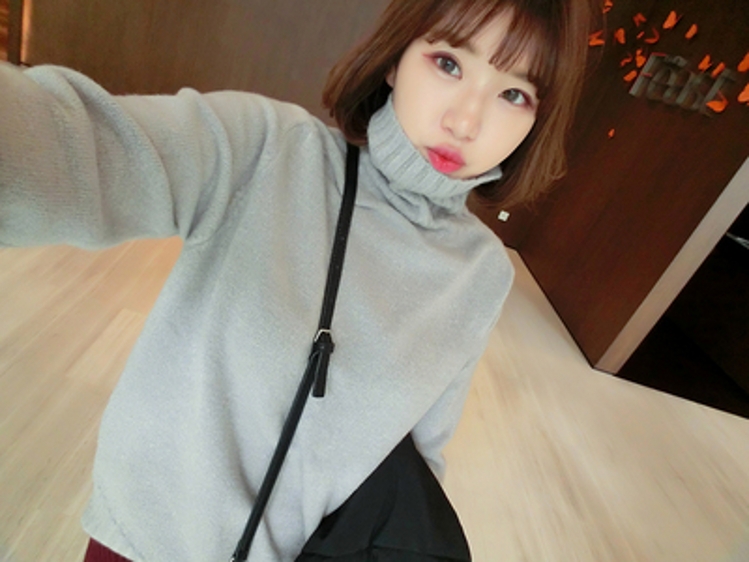 有點寬松的版型,高領的設計,整個人氣質分就上來了