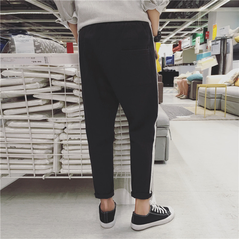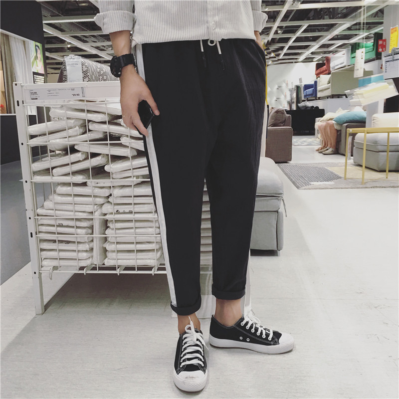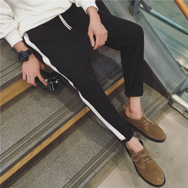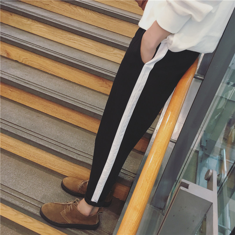 / 秋季新款韓版純色豎條青年修身小直腳男褲休閑褲