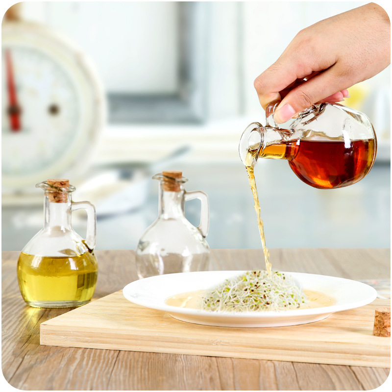鴨嘴玻璃小油壺廚房醬油醋壺居家飯店防漏帶木塞帶把手加厚調料瓶