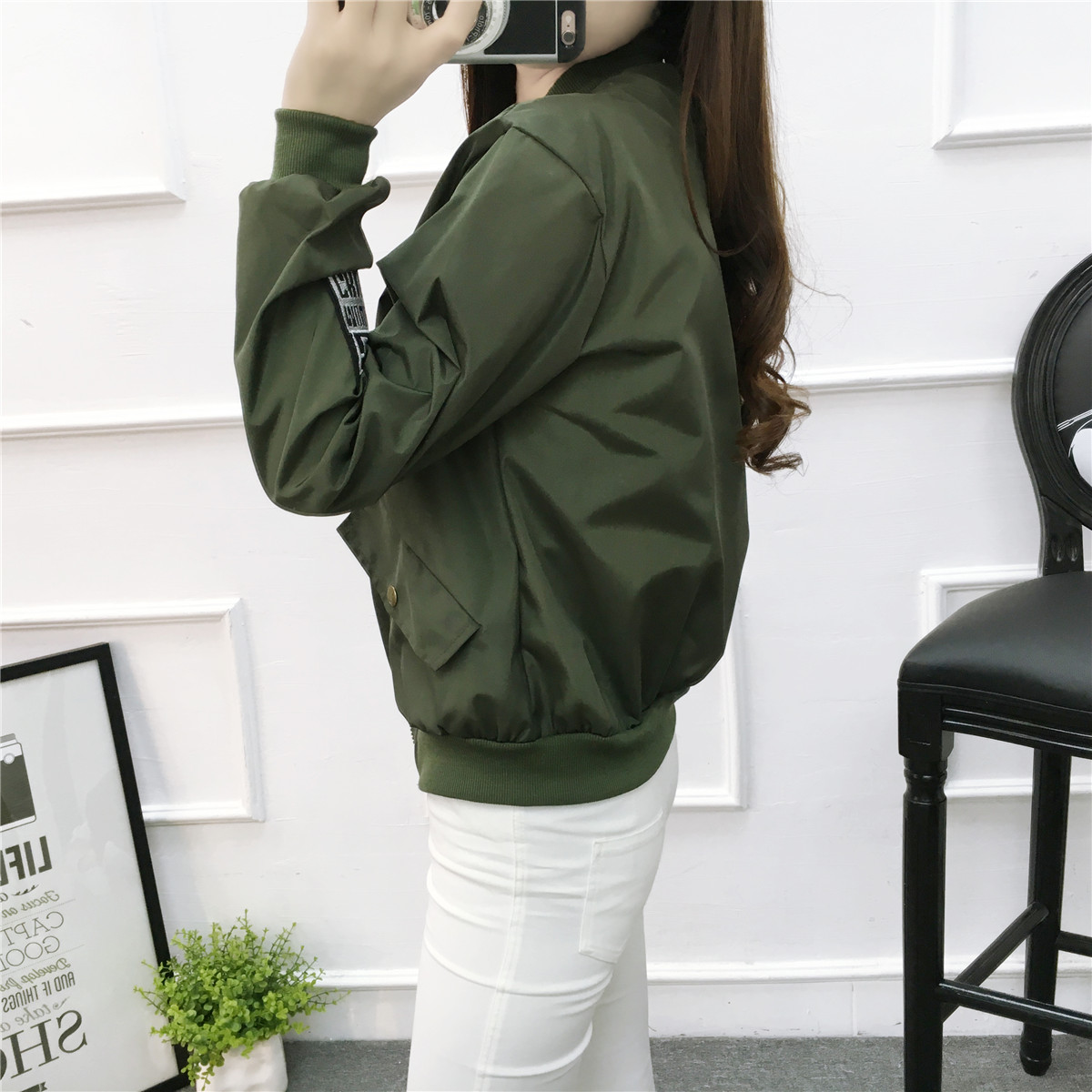 軍綠色棒球服女2017春秋新款韓版修身飛行員夾克衫學生短款小外套