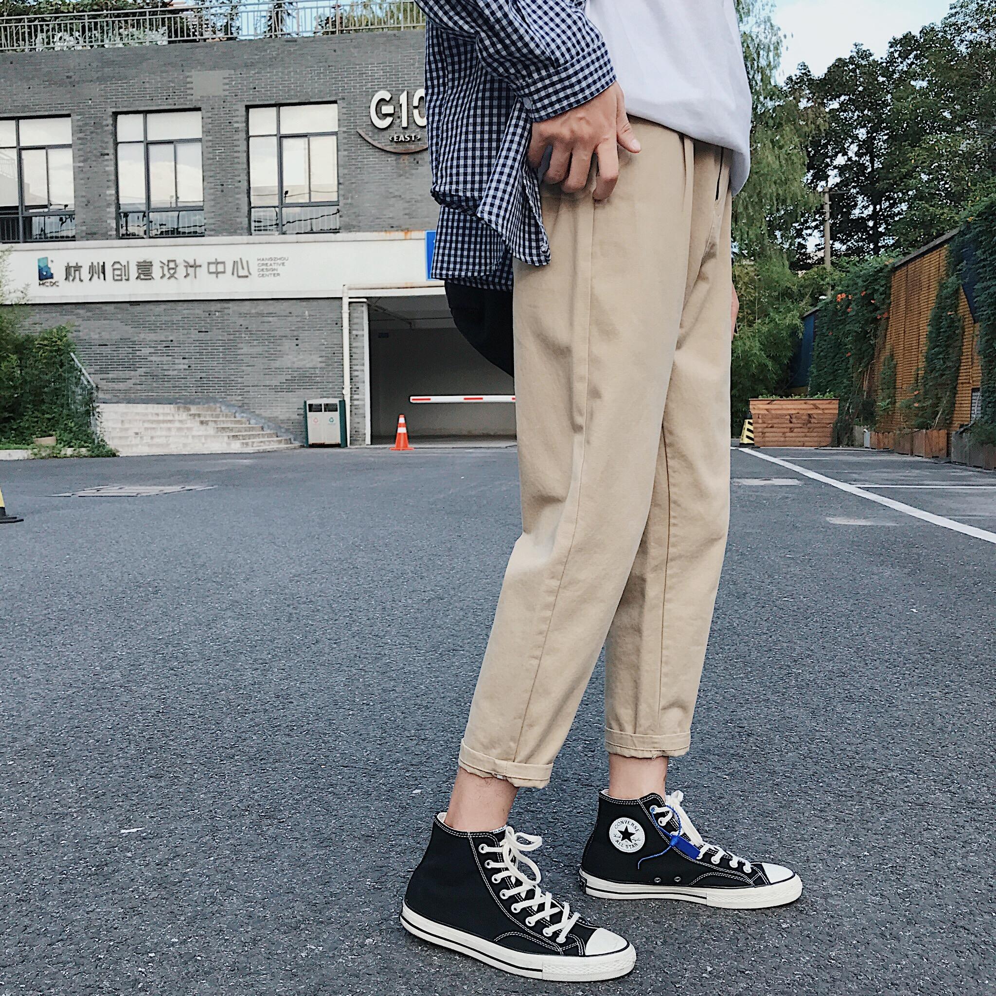 / 文藝男女店原宿男士褲子秋季潮流休閑褲韓版寬松九分褲春秋款男褲