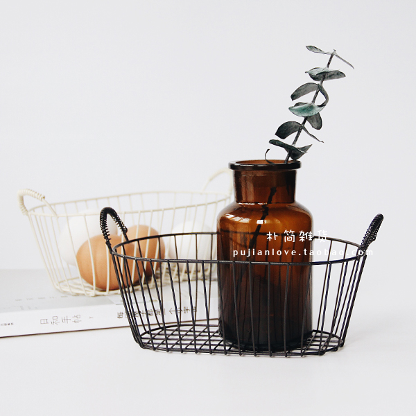 / 樸簡 復古鐵藝提手收納籃子筐桌面收納置物籃水果面包籃拍攝道具