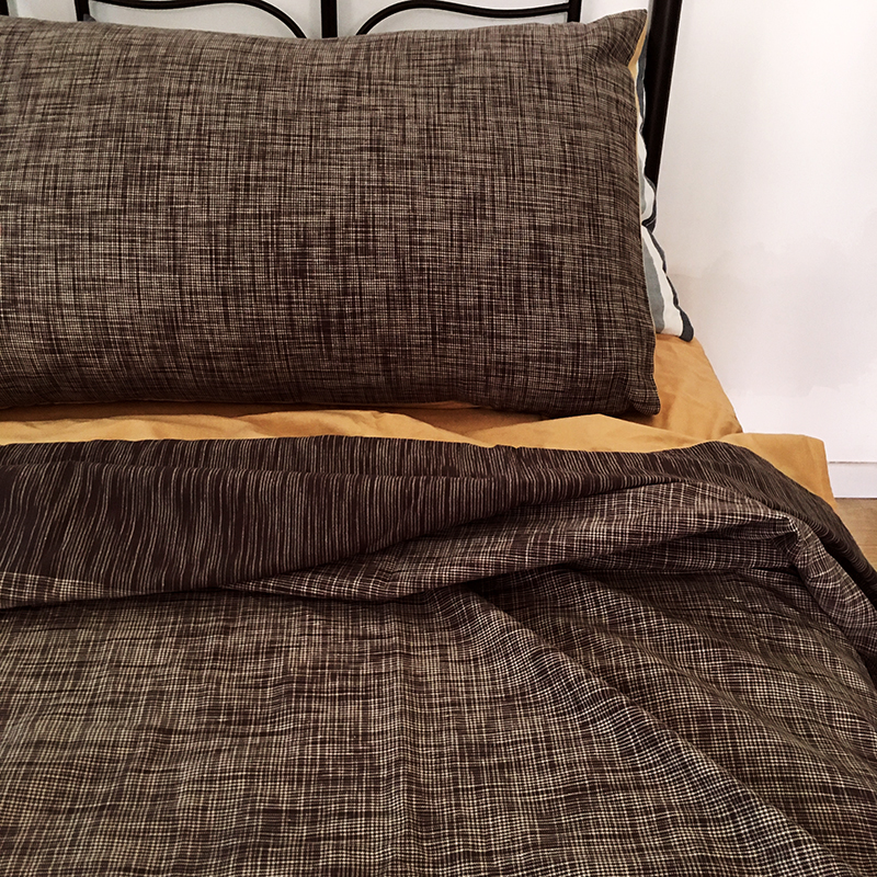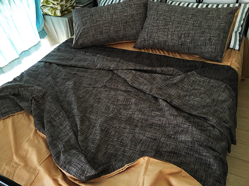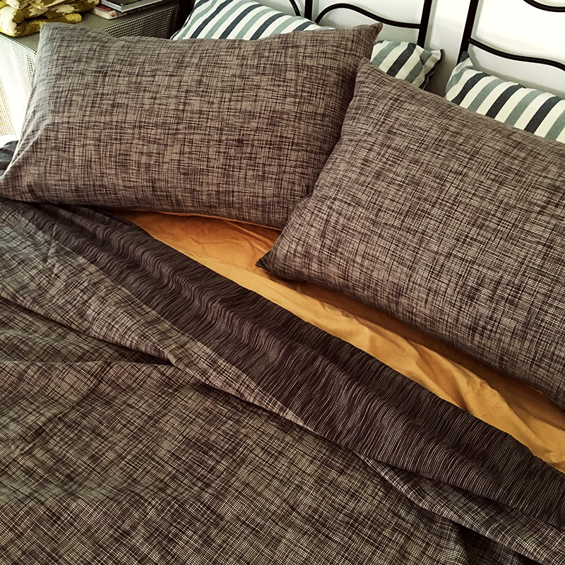 關于她:被套采用紐扣設計,枕套為信封枕套。橫豎條紋搭配效果很棒哦